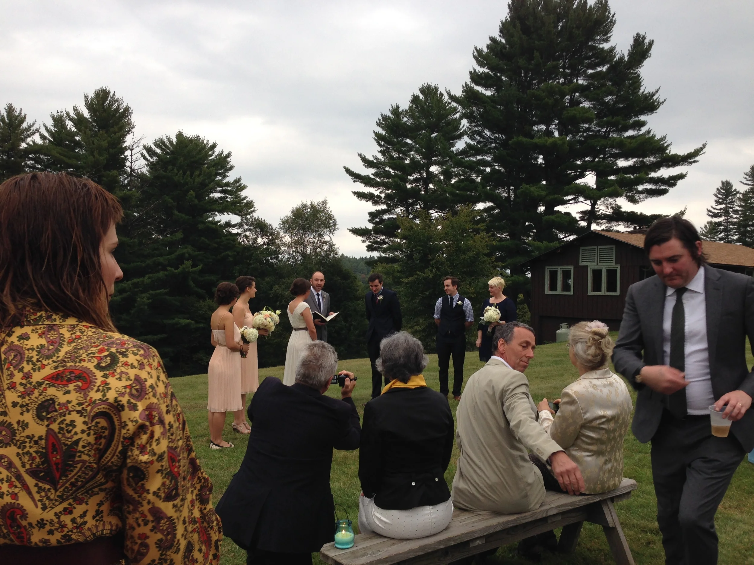 Camp out! Lyle and I headed into the Adirondacks this past weekend to attend the wedding of our friends, Minou and Nate, at Chestertown's Forest Lake Camp. The Brooklyn-based couple rented out the full 800 acres for the entire weekend giving us guests the opportunity to enjoy all the amenities summer camp has to offer, from paddle boats to skeet shooting, softball to tether ball, bonfires to sing-alongs.
