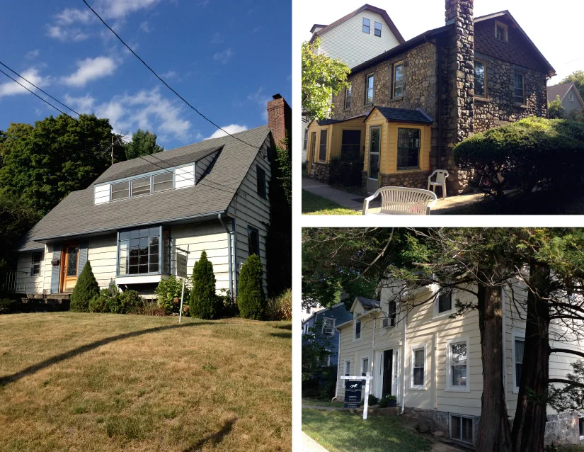 Left: 18 Morris Ave., $395,000; Top Right: 26 Rock St., $349,000; Bottom Right: 207 Main St., $675,000