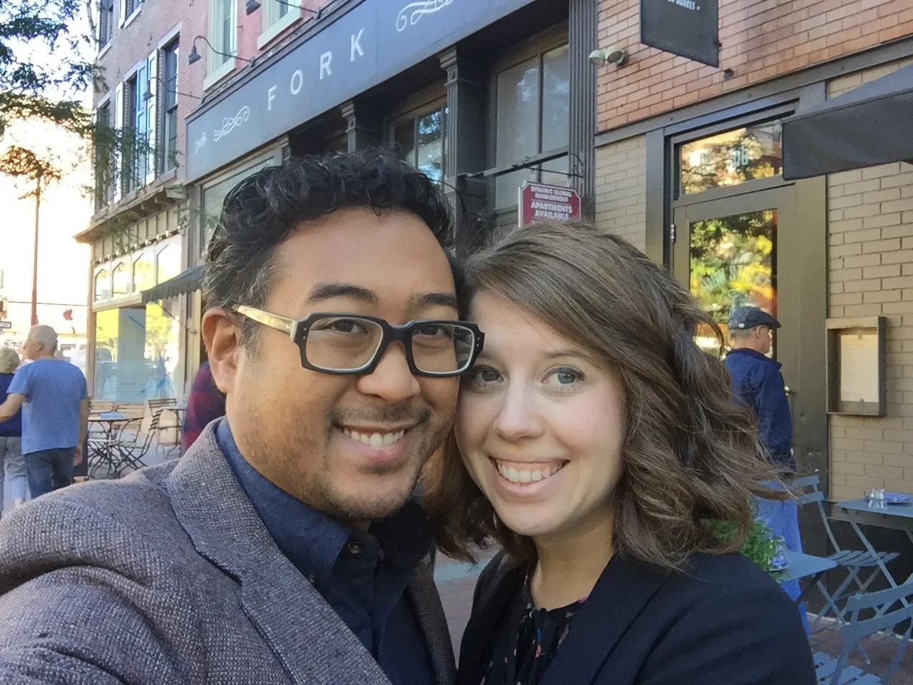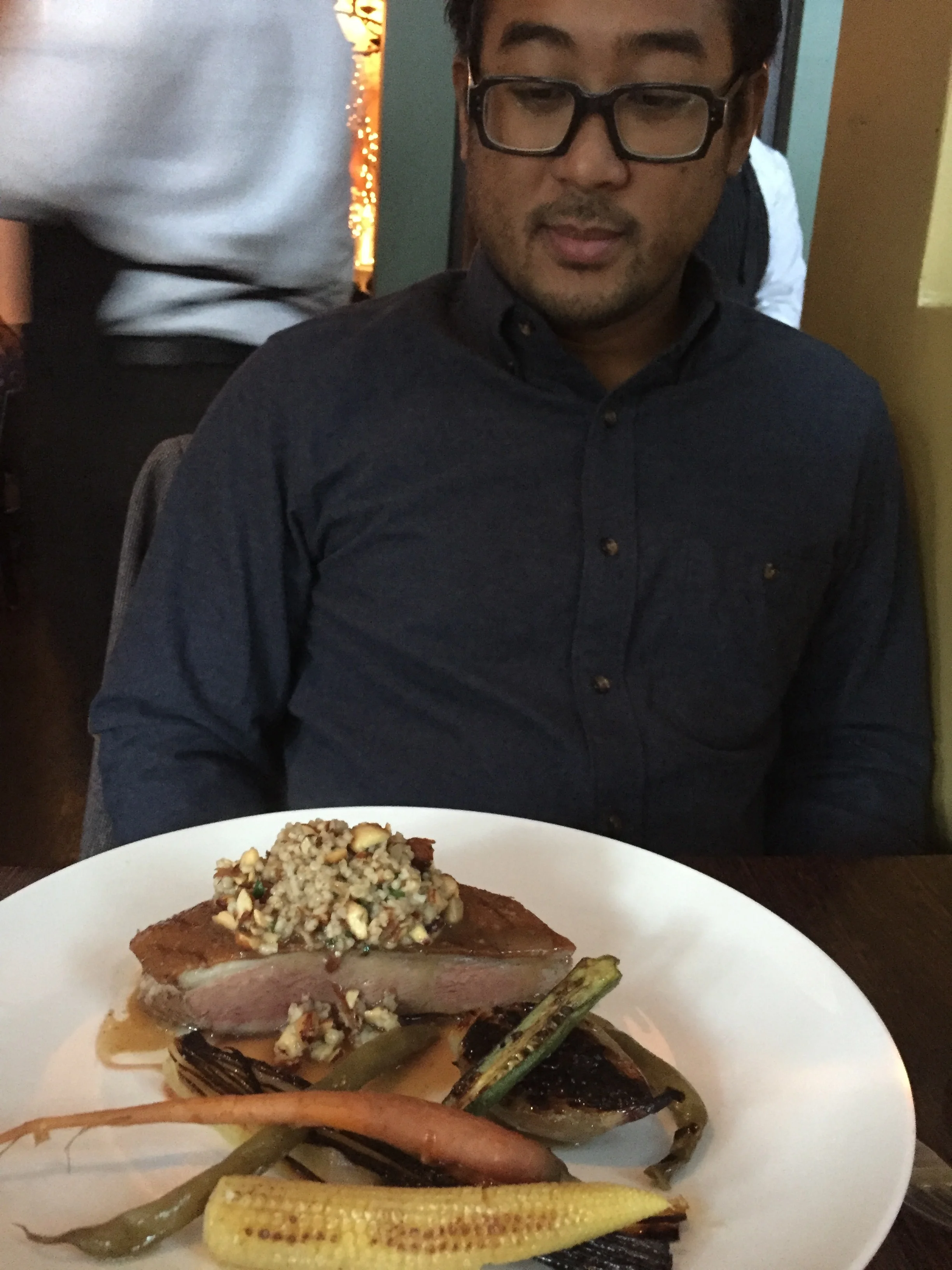 Last night Lyle and I took in dinner and show... Phila-side. Paula Poundstone drew us out of the five boroughs for an evening of great food and giggles. We started out at Fork on Market Street, where my branzino was only surpassed by Lyle's duck. Who knew that smoked oats could be the star?